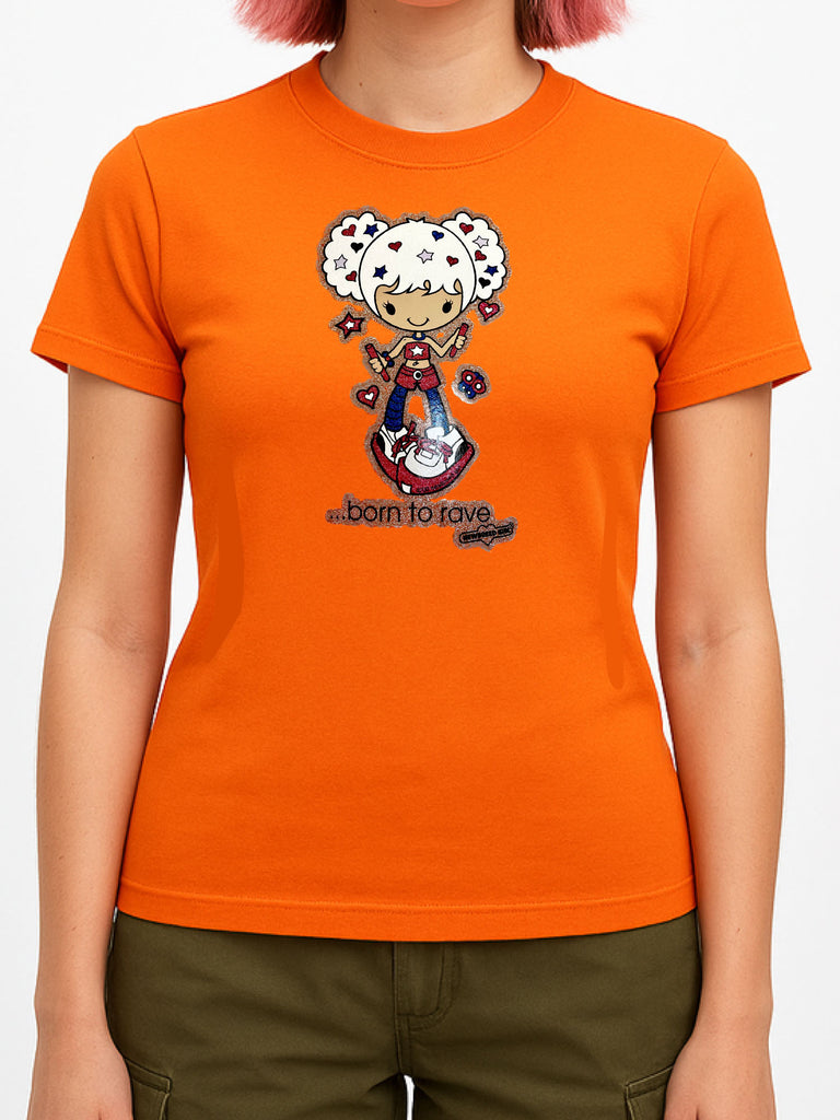 THE SCOOP:  100% early 2000s rave kid energy! Step right back into Y2K with our epic Born To Rave Glitter Girlie Tee. Originally released in 2000, this iconic design defined an entire generation of party kids and underground style